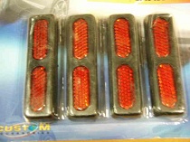 3-1/8" x 1-3/8" stick-on reflector with adhesive back for quick and permanent mounting; Red